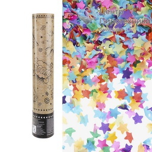 23151 Пневмохлопушка (12/30 см), Комикс, Праздничный взрыв, Конфетти тишью, Звезды, Ассорти, 1 шт.