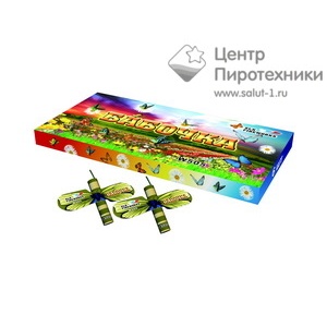 Раскручивается и взлетает с разноцветным свечением и разбрасывает огненные искры